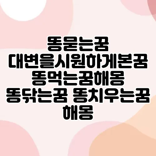 꿈은 우리의 무의식과 감정을 표현하는 흔한 방법 중 하나입니다. 특히 똥꿈은 다양한 형태로 나타나며, 그 해석이 흥미롭고도 중요합니다. 오늘은 똥이 등장하는 여러 꿈들에 대해 자세히 살펴보고, 이 꿈들이 가진 의미를 이해해 보겠습니다. 우리는 대변을 시원하게 보는 꿈, 똥 묻는 꿈, 똥을 먹는 꿈, 그리고 똥을 치우는 꿈을 다루며, 각 꿈의 해석에 필요한 배경 지식도 함께 제공할 것입니다. 함께 탐구해 보시죠!